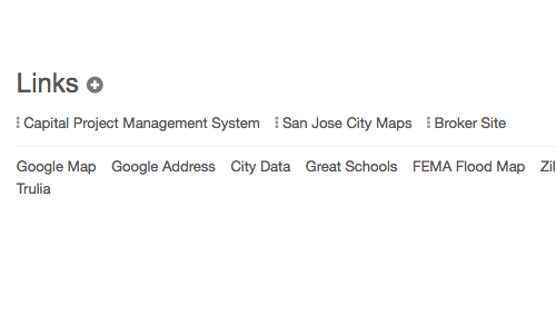 You can add various links to the real estate property. Using property address, Reiance will also automatically put Smart Links that forwards you to useful sites like Google Maps, Zillow, Trulia, FEMA Flood Map and more. The list of Smart Links are growing.